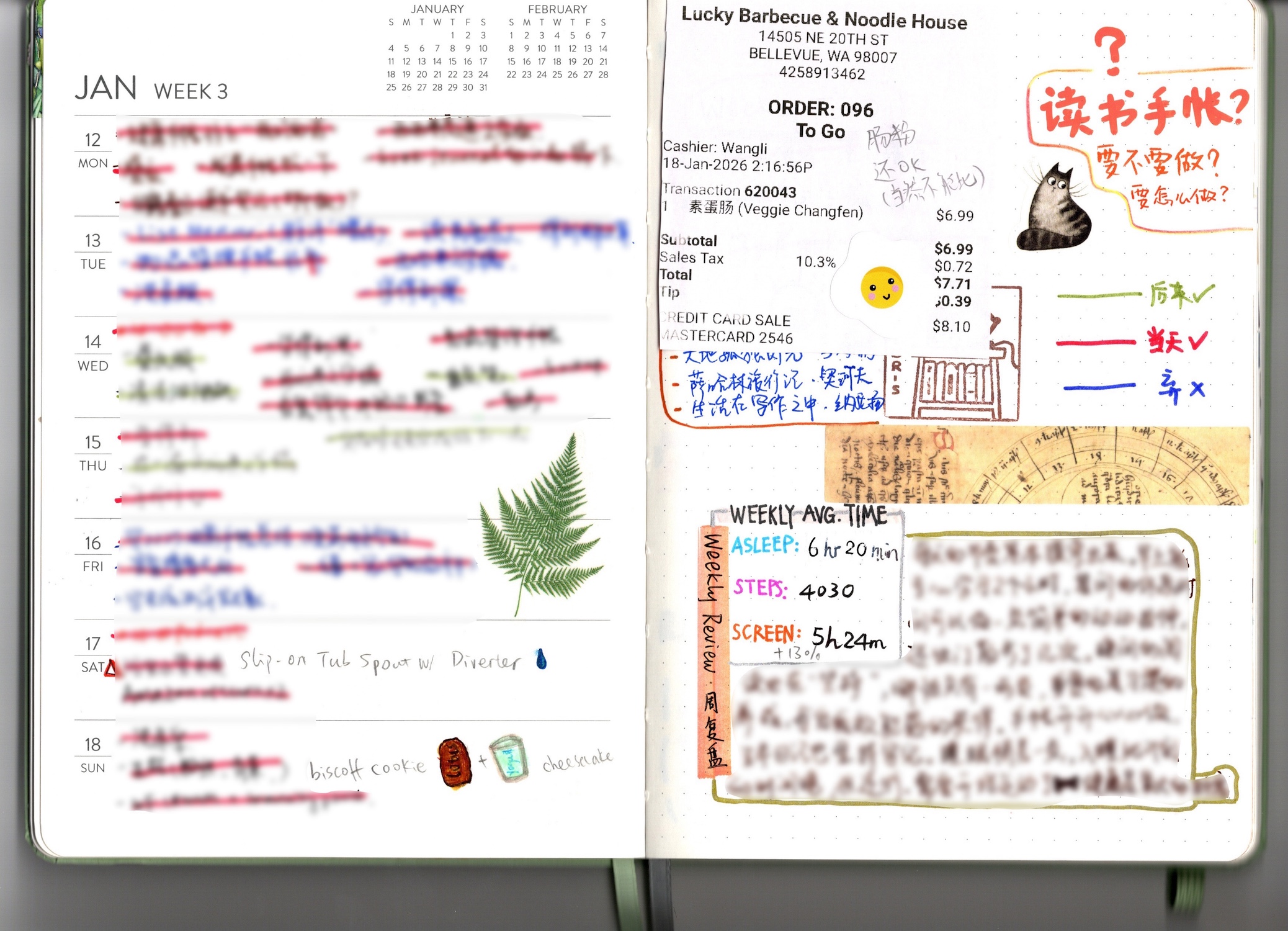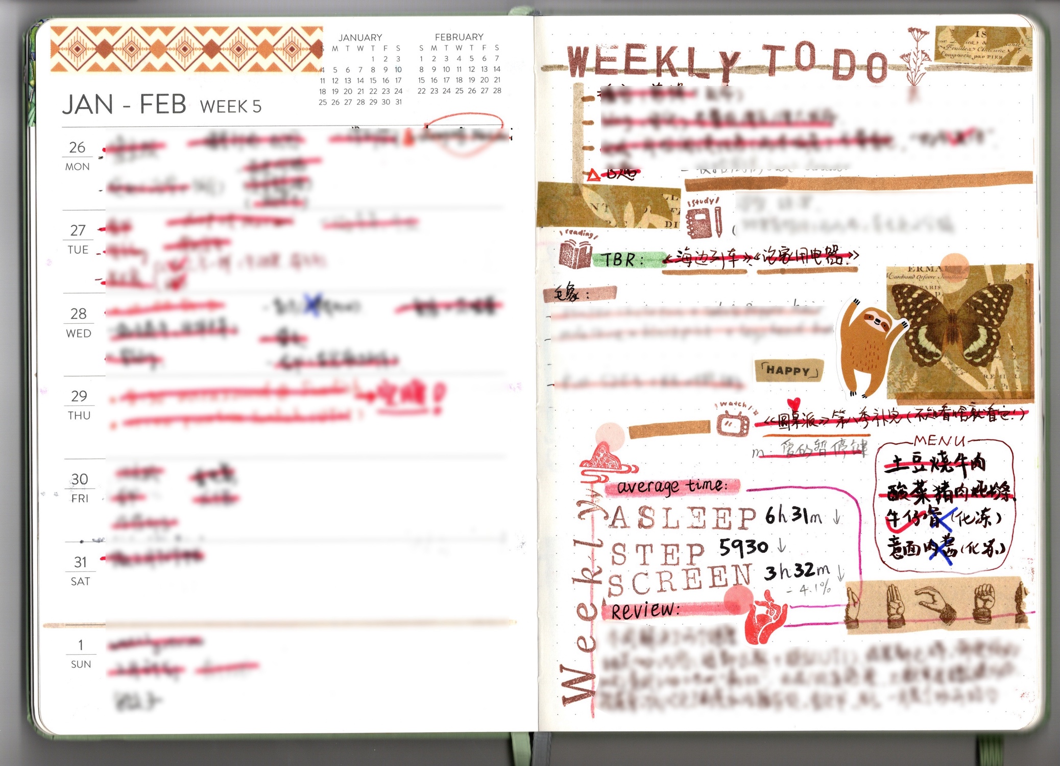 新一年的周计划本用到第八周,可以说我头一次把手帐玩出前所未有的程度。